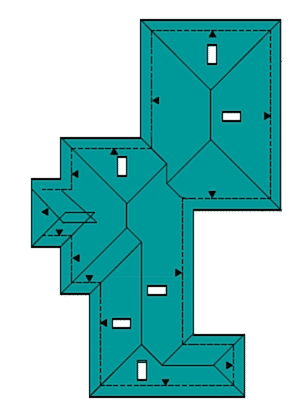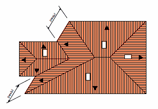 Aşağıda değişik geometrideki bir bina çatısının tanzimi görülmektedir.