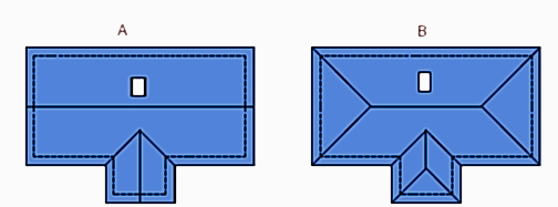 Farklı şekildeki bir çatı hem beşik, hem de kırma çatı şeklinde tanzim edilebilir. Yukarıdaki şekillerde aynı şekildeki binaların beşik ve kırma çatı modelinde tanzim edildiklerine dikkat ediniz.