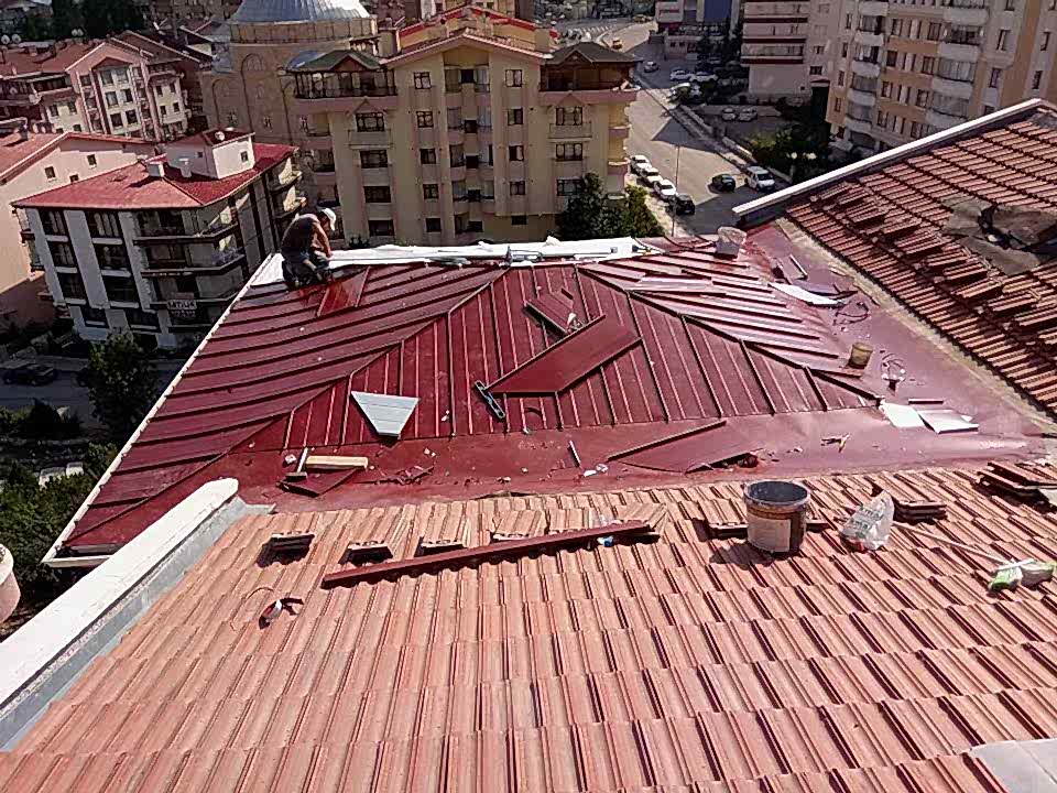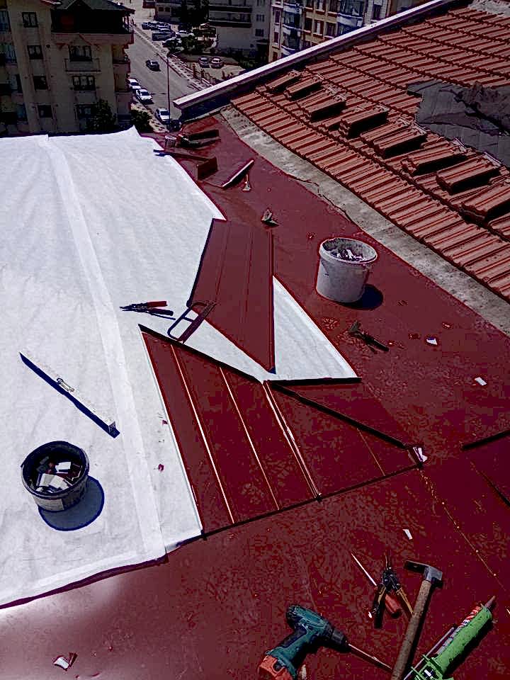 - Su Yalıtım Örtüsünün Değiştirilmesi: Eski su yalıtım örtüsü sökülerek yerine polyester keçeli kiremit altı örtüsü serilir ya da pürmüz yardımıyla membran yapıştırma uygulaması yapılır.
